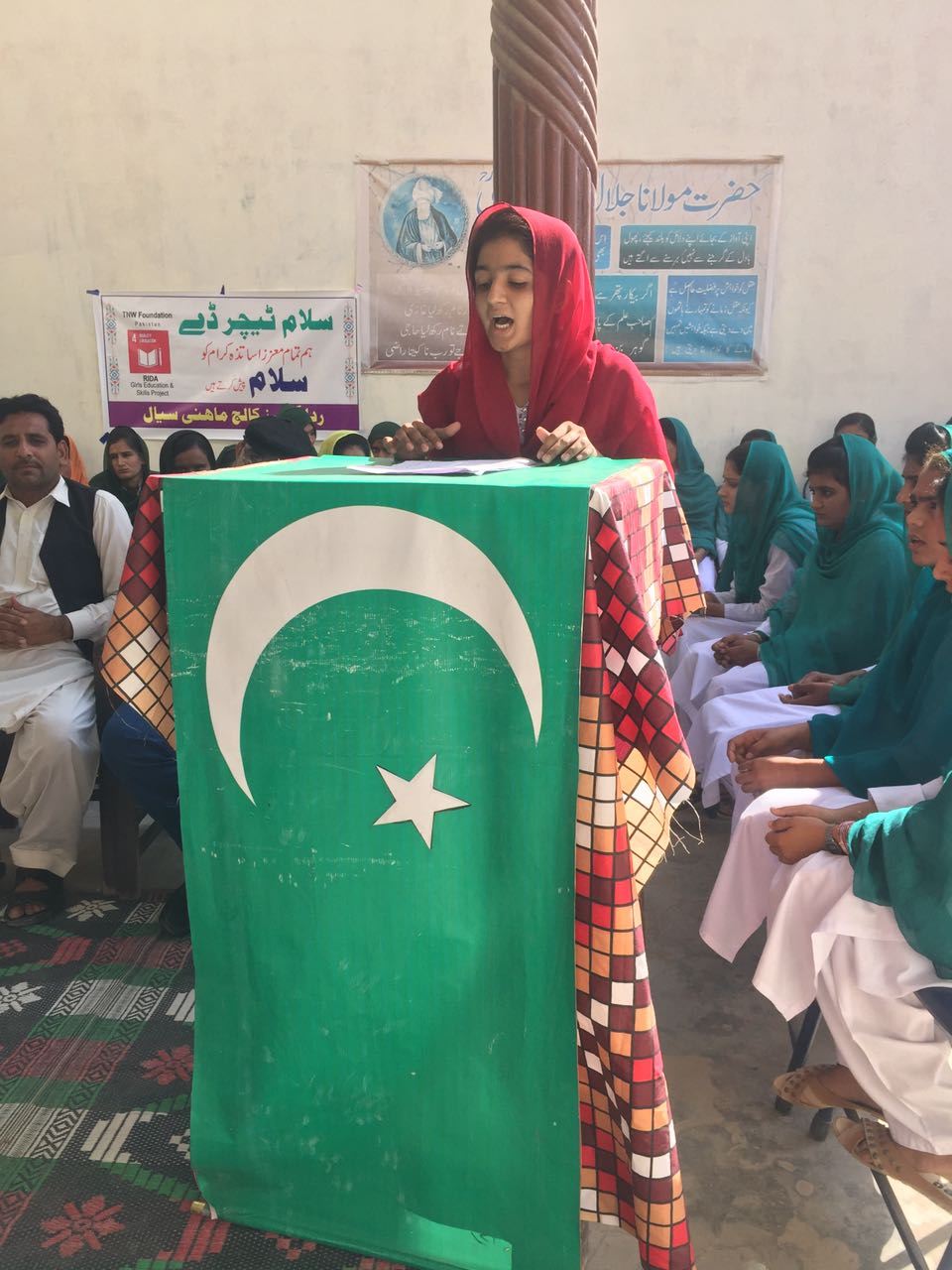 Razia Soqeen, RIDA student, paid tribute to all honorable teachers in her English speech. Mr. Zafar Iqbal said, “we are here and we are respected due to remarkable role of our teachers. Teacher is a true agent of change in society”. He further said, “A teacher is honored by God and Holy Prophet. We should respect them from the core of our heart”. He also paid tribute to his teacher sir ZikaUllah sb who was the real inspiration behind his success.