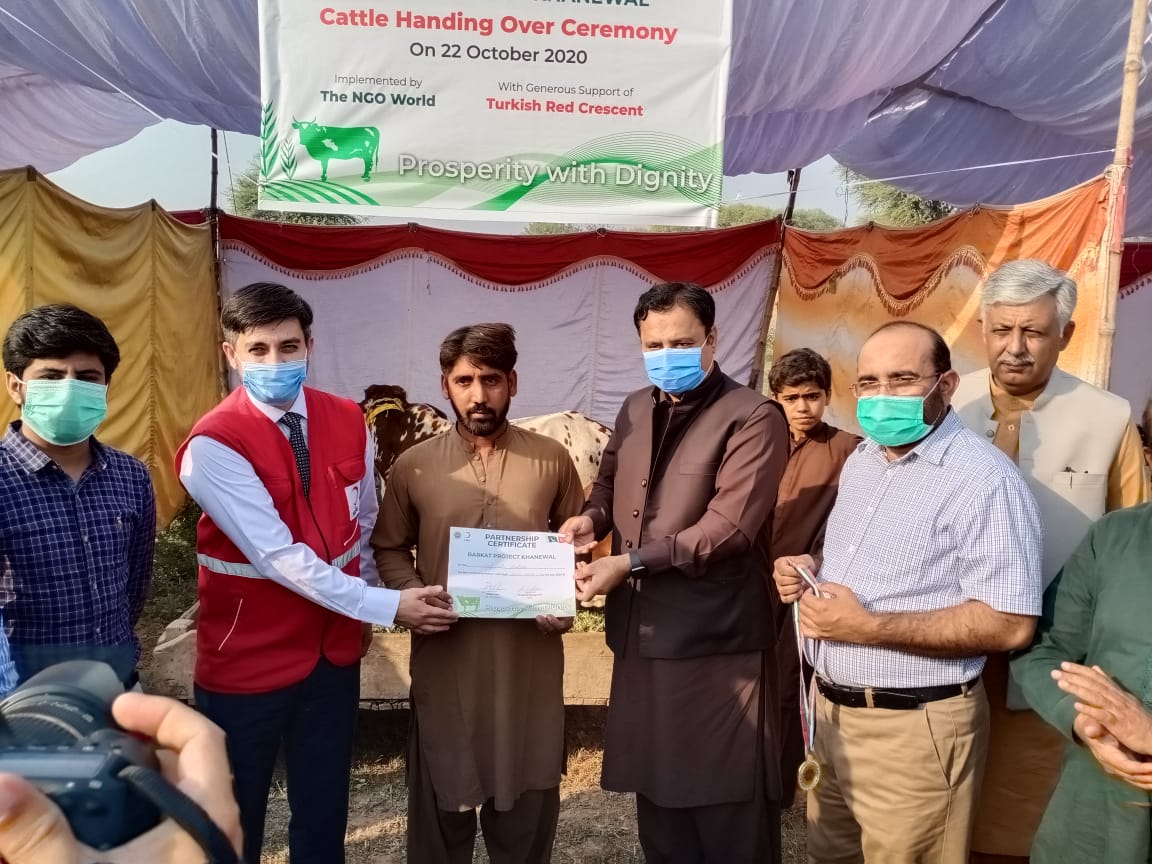 Deputy Commissioner Khabewal, Agha Zaheer Abbas Shirazi distributed calves among the poor farmers. Head Turkish Red Crescent Pakistan, Ibrahim Carlos, Chairman The NGO World, Zafar Iqbal were also present on the occasion. Government officials, representatives of NGOs, and poor farmers were also present on the occasion.