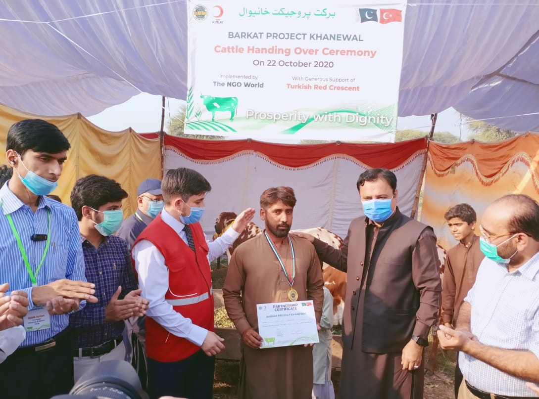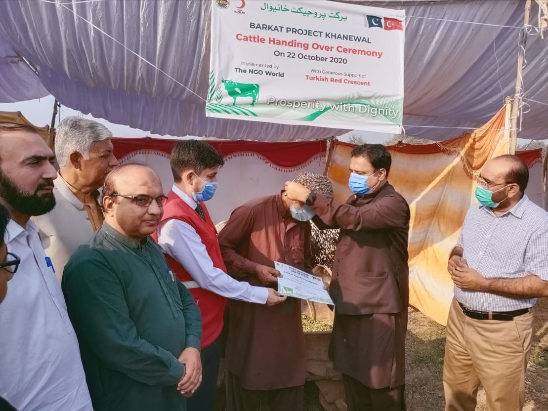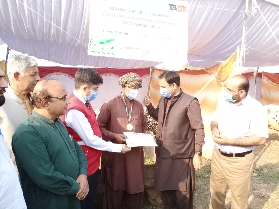 October 22, 2020 Khanewal; Barkat Project launched in collaboration of Turkish Red Crescent and The NGO World to uplift the poor farmers of Khanewal and help them stand on their own feet. Under the Barkat Project, 150 pairs of calves will be distributed this year among poor farmers.