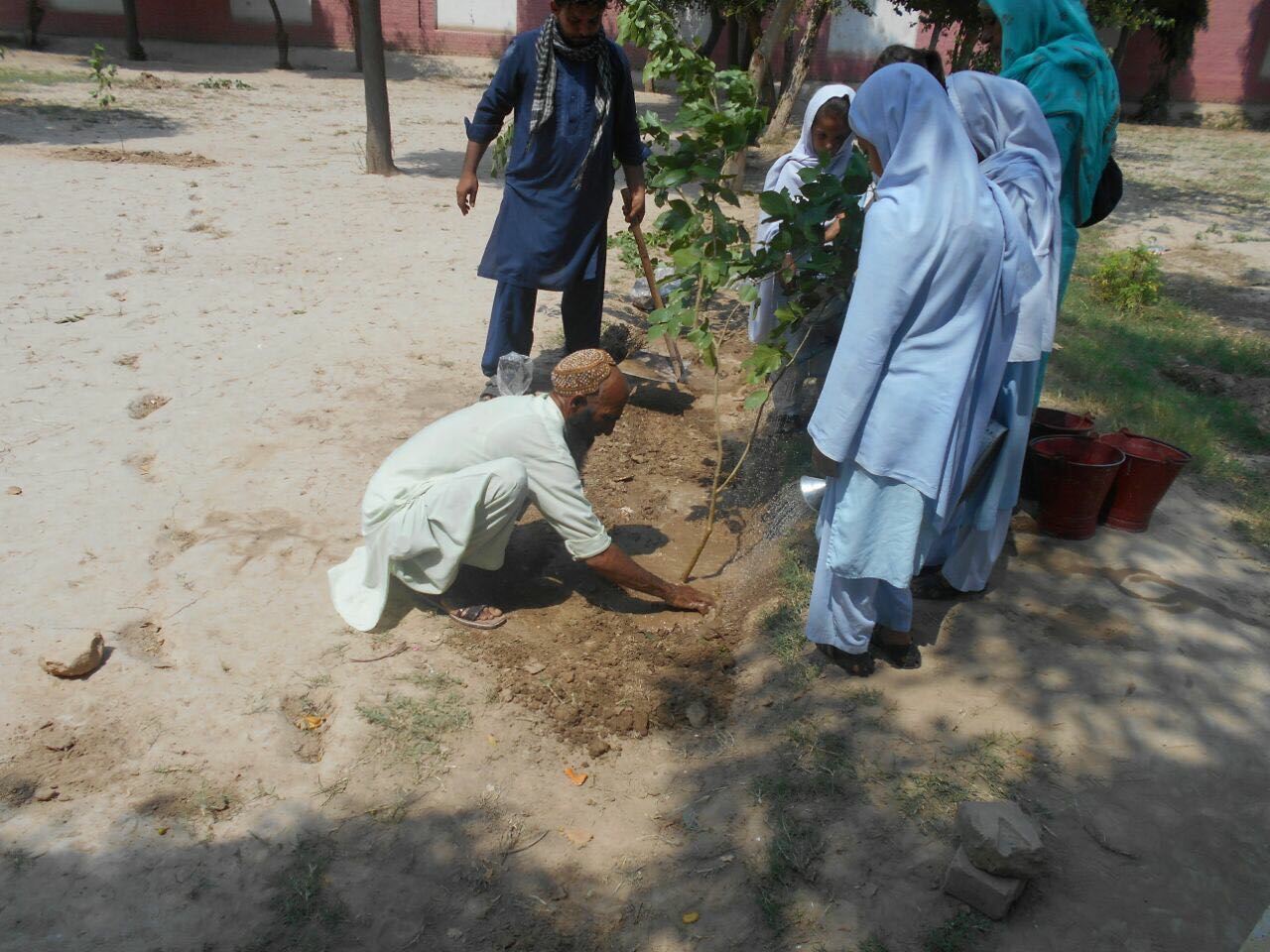 Students at Govt Girls Higher Secondary School 23/10-R khanewal following Plantation campaign under guidance and supervision of their inspiring head teacher. A project of
