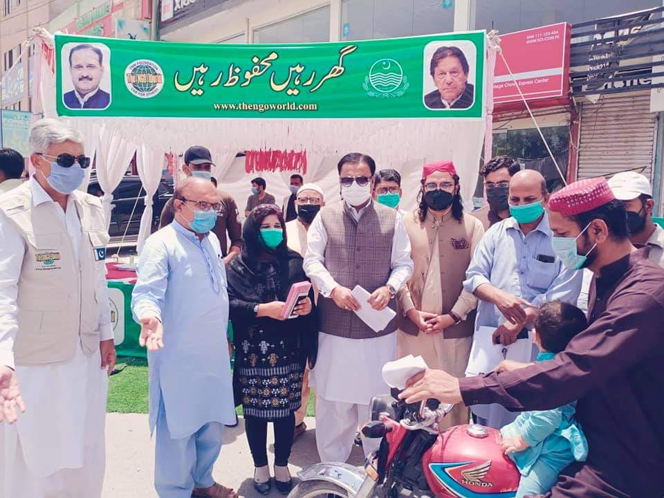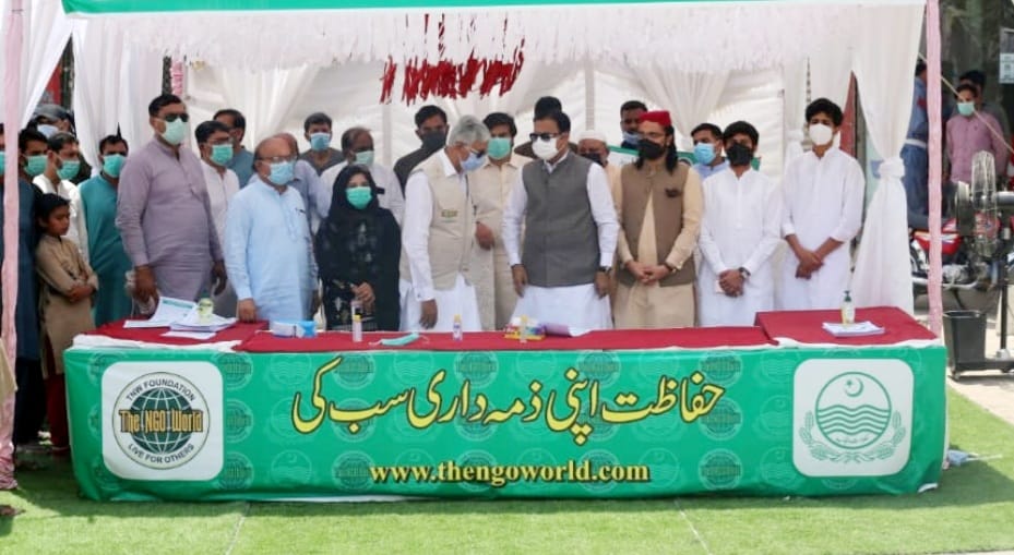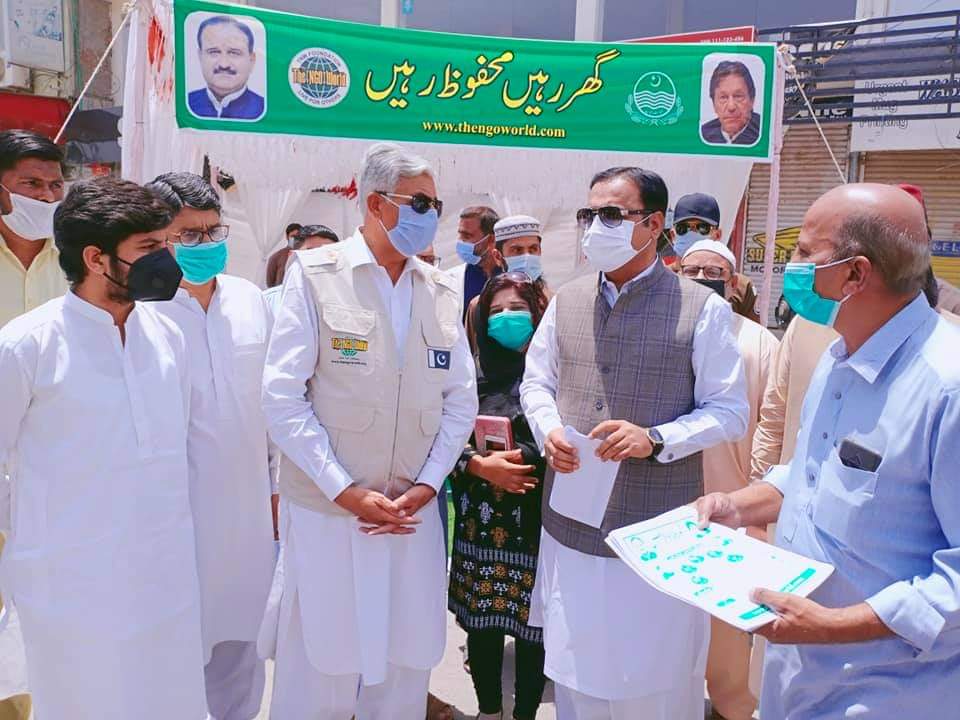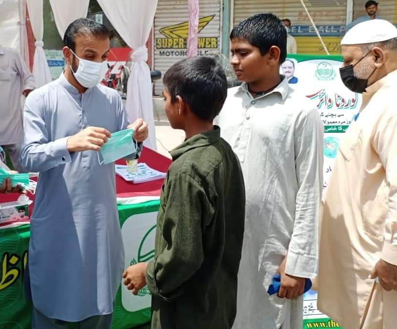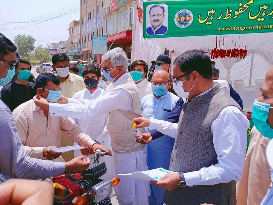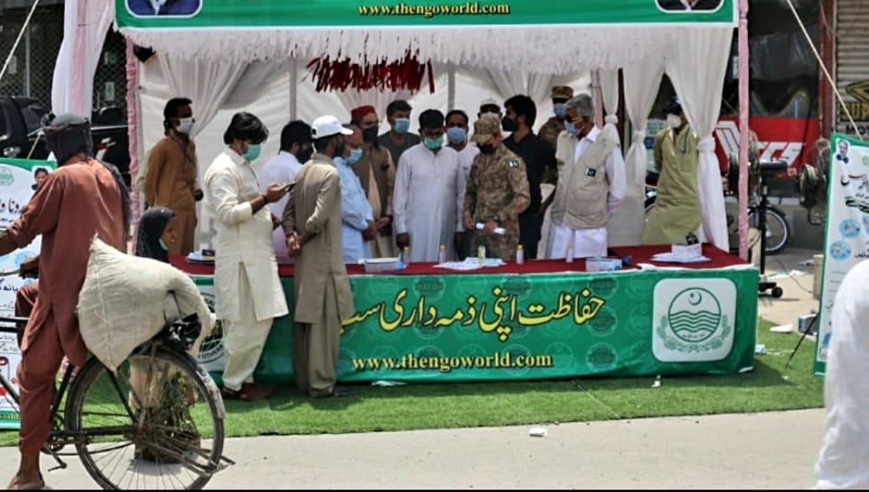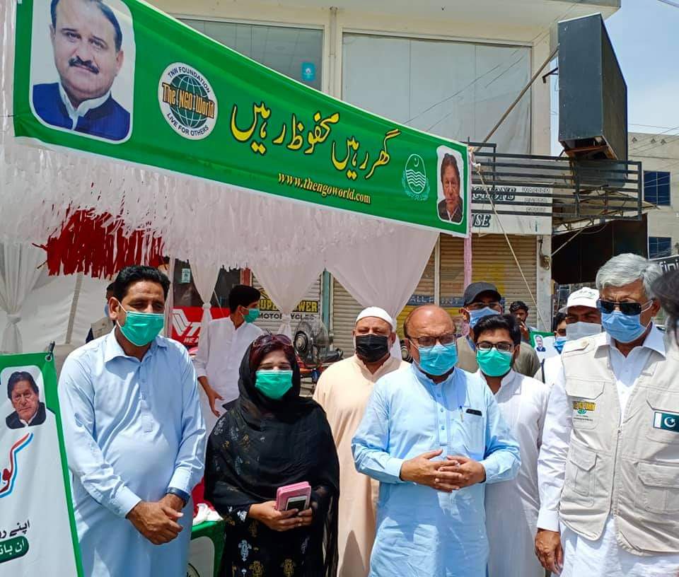May 10, Khanewal: A camp has been set up by The NGO World at Girls College Chowk in Khanewal in connection with the Corona Rescue Awareness Campaign. Officials of The NGO World Foundation briefed the general public on the precautionary measures and restrictions on SOPs. Lieutenant Uzair Ahmed, Member District Steering Committee Malik Masood Chauhan, Dr. Akhtar Hussain, Mr. Rao Ijaz Ahmed, Senior Journalist Imtiaz Ali Asad, Mr. Tahir Naseem, Mr. Nadeem Mughal and a large number of Tiger Force soldiers were also present in the camp Pir Zainul Abidin, former District Bar President Azhar Abbas Khan, Ms Shamail Shah and other social figures also paid special visits.