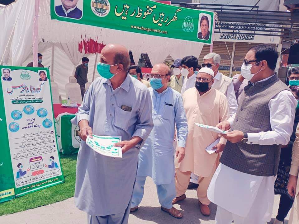 Deputy Commissioner Khanewal Syed Agha Zaheer Abbas Shirazi and Assistant Commissioner Khanewal Bakhtiar Ismail visited the camp separately and sensitized the citizens about the situation in Corona, distributed pamphlets and masks, and directed the people to stay home on Eid holidays. They emphasized that Traders, transporters, citizens must ensure lockdown.