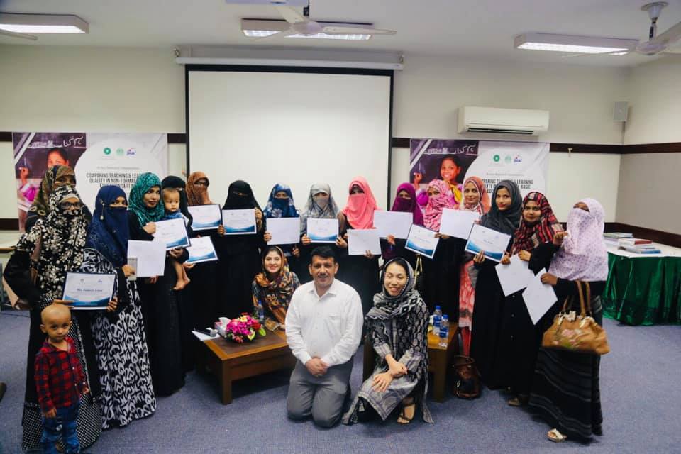 Dr. Dilshad Ashraf (AKU) presented the findings, and Ms. Chiho Ohashi (chief advisor, JICA) welcomed the guests and shared project details. Mr. Zafar Iqbal (Founder of THE NGO WORLD) briefed about the experiences of his organization on Accelerated Education Program, Secretary School Education and Literacy Department, Qazi Shahid Pervez, appreciated these efforts and said the Sindh Government is pleased with such efforts and have enhanced funds for non-formal Education.