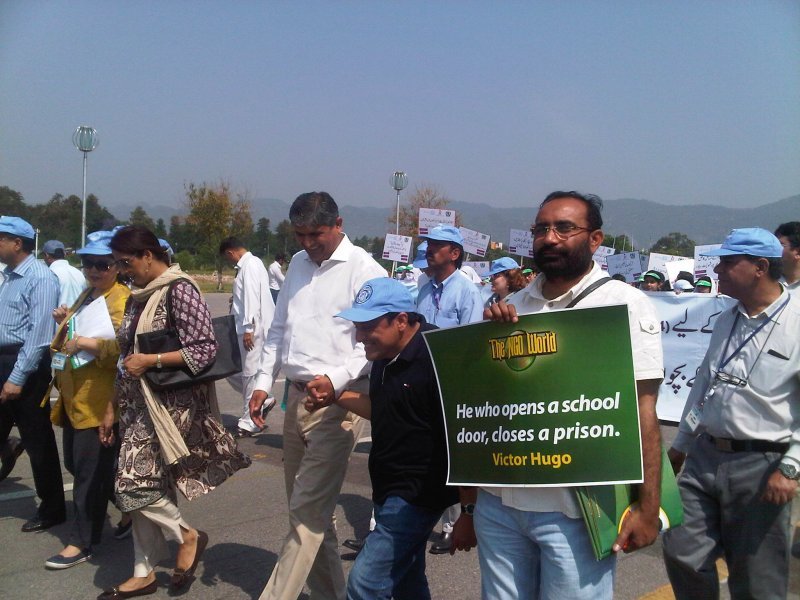 On 6 May 2014, The NGO World Foundation Islamabad team participated in the advocacy walk as a part of Education For All (EFA) campaign started at Sports Complex Islamabad by UNESCO Pakistan. Thousands of participants including government departments, UN agencies, students, civil society, press and media persons took part in this walk. Participants were holding banners & placards having quotes on importance of education.