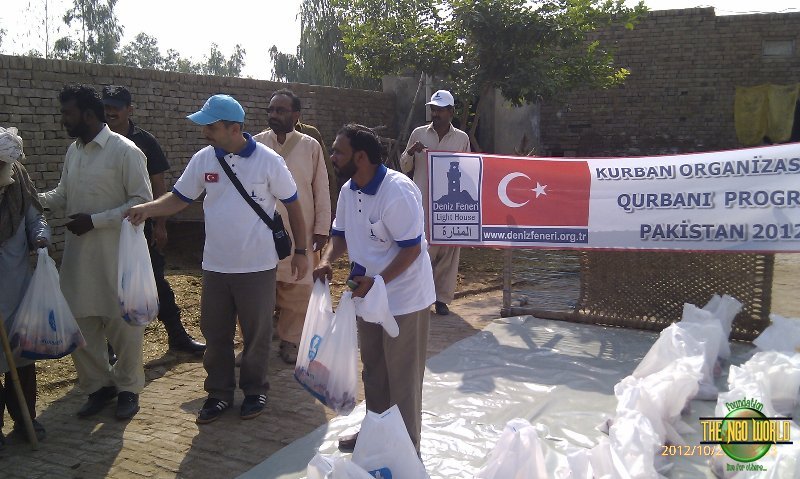 Alhamdulillah, The NGO World team along with Turkish (Deniz Feneri) volunteers performed Qurbani during the Sacred Event of Eid-ul-Adha 2012 in Pakistan. We managed 714 shares of Qurbani and distributed meat among more than 5000 deserving families so they could also rejoice the happy moments of Eid. The NGO World thanked all the stakeholders that supported during this event.