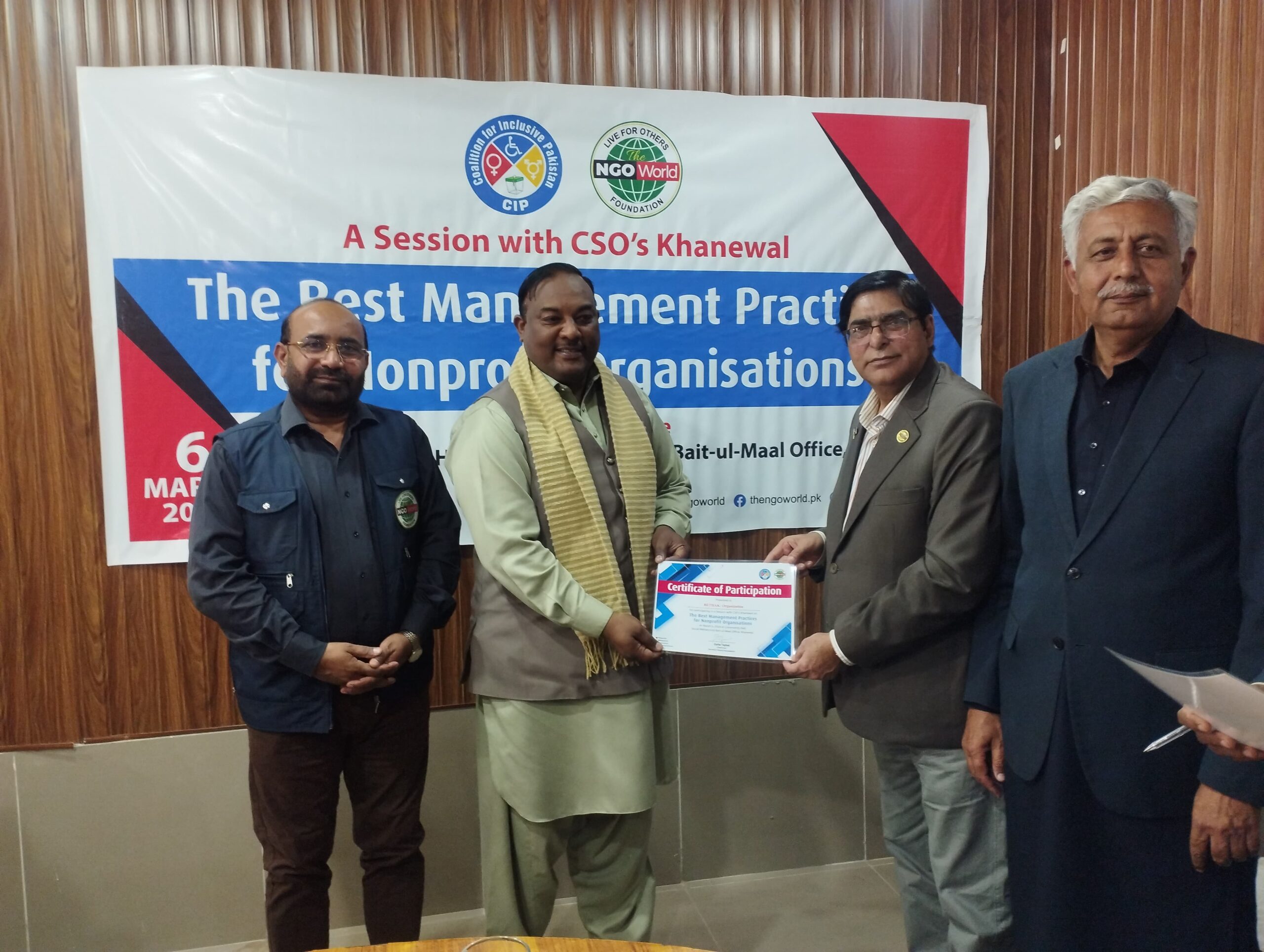 On March 6, 2024, The NGO World Foundation facilitated a comprehensive capacity-building session at the Community Hall of the Social Welfare Department in district Khanewal. The session, aimed at local NGO representatives, saw the participation of 24 individuals representing 17 NGOs.